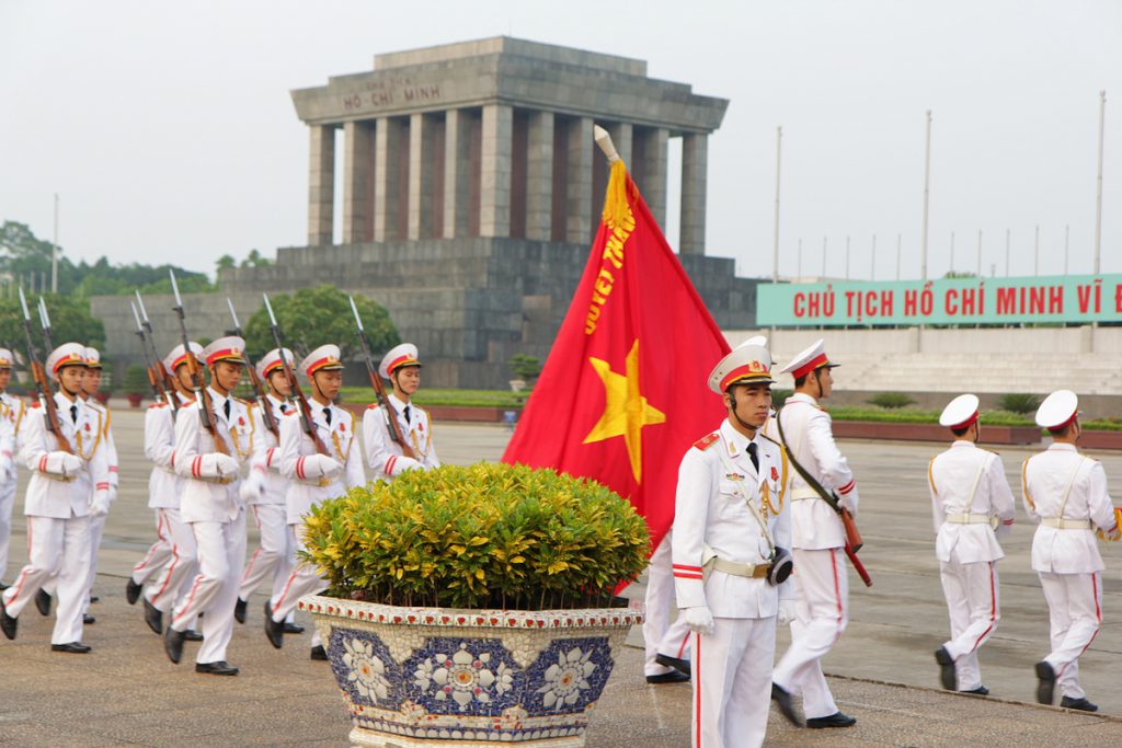 Every morning a few hundred people gather for morning practice on Ba Dinh Square in front of Ho Chi Minh’s mausoleum in Hanoi. At 6 a.m. honor guards march into the five-hectare square to raise the national flag and play the Vietnamese anthem. State television VTV1 broadcasts a recording of the ceremony.