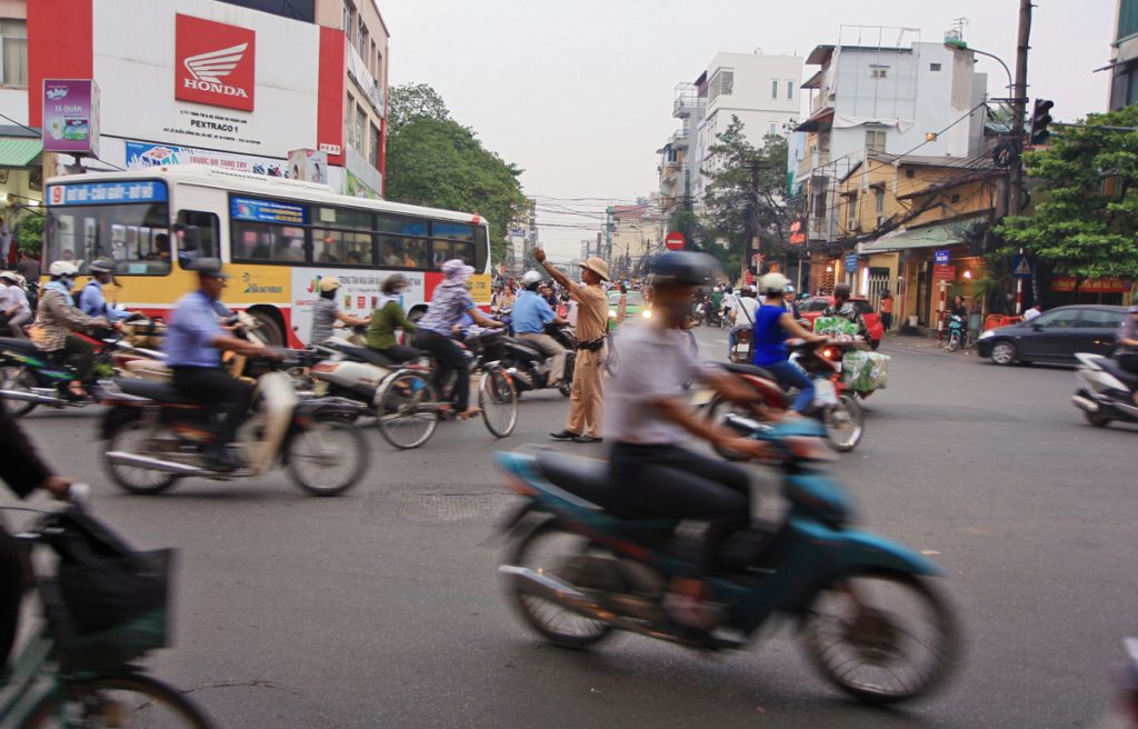 Giai Phong expressway in the capital Hanoi accommodates three of Vietnam’s best universities – Hanoi University of Science and Technology, National University of Civil Engineering, and National Economics University. In the evening students erect nets on the sidewalk to play badminton. Just feet from them, thousands of motorbikes and cars jam on the congested artery which sucks in traffic from southern Vietnam.