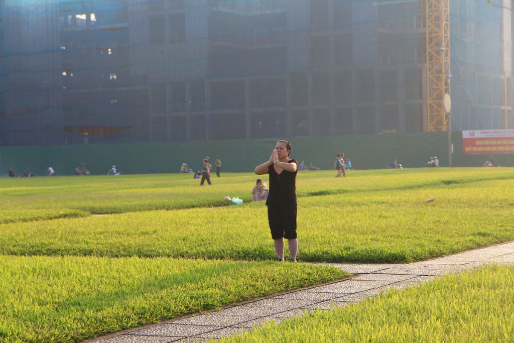 On my last day, I walked to the square before sunrise. Youth and elder – wearing trainers with the logos of Wilson, Nike and Kappa – jogged, stretched, contemplated or just walked through the dewed grass. Distant hum of motorbike engines and horns floated.
